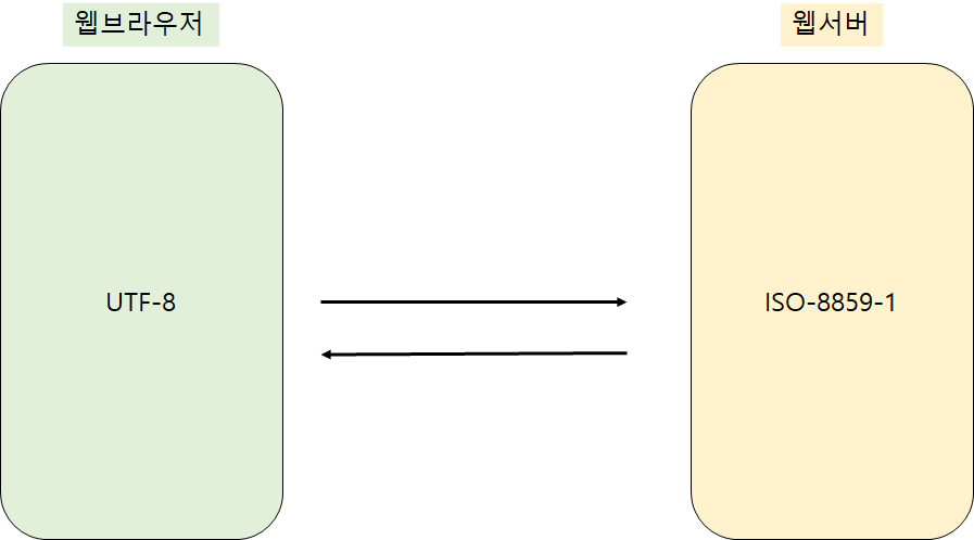 웹브라우저와 웹서버는 서로 다른 인코딩 방식을 가지므로, 적절한 인코딩 설정이 필요하다.
