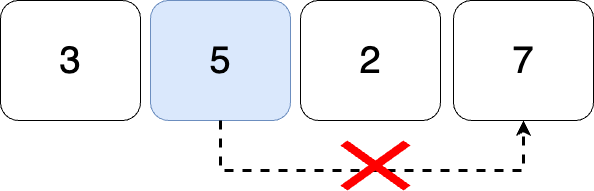 5의 오큰수를 구해보자. 5의 가장 오른쪽은 2이다. 2는 5보다 작으므로 오큰수가 아니다.