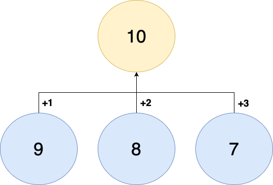 3가지 사건은 모두 독립사건이다. 그러므로 d(10) = d(9) + d(8) + d(7)이 성립된다. dp는 기저조건으로 독립사건을 구하여 점화식을 도출하는 것이 중요하다.