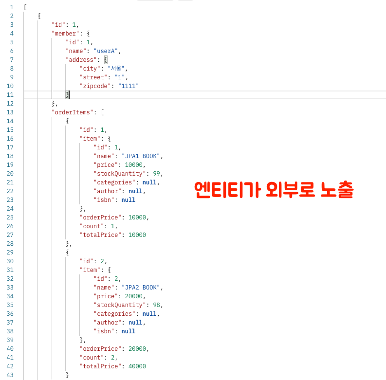 1. 엔티티가 외부로 노출되는 코드