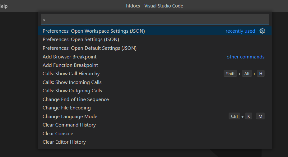 2. 검색창에 settings를 입력하면 Open Settings(JSON)이 뜬다.이를 클릭한다.