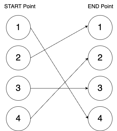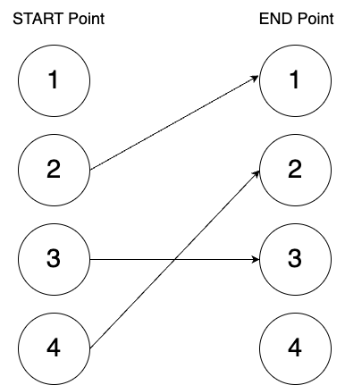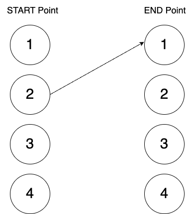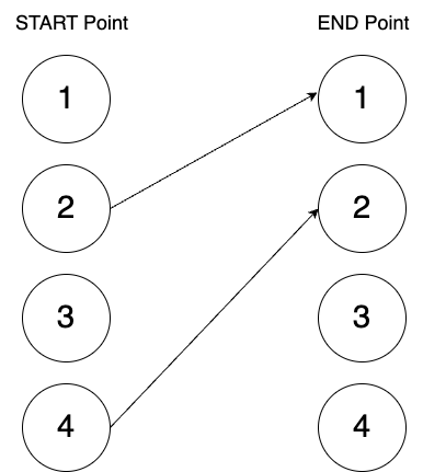3번선은 2번선보다 End Point가 크니 그대로 연결한다. 반면 4번 선은 3번 보다 EndPoint가 작다. 4번 선은 2번 엔드포인트와 연결되는데, 2번 엔드포인트와 가장 가까우면서 큰 엔드포인트는 3번이다. 3번 엔드포인트와 연결된 선을 제거한다.