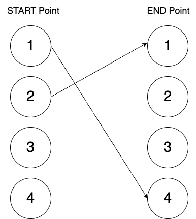 1번 선을 연결하고 2번 선을 연결하려고 한다. 1번 선의 엔드포인트가 2번 선의 엔드포인트보다 크다. 그럼 연결된 EndPoint 중에 가장 가까운 큰 값의 엔드포인트에 연결된 선을 제거한다.