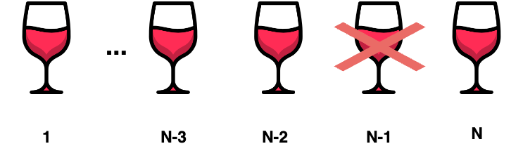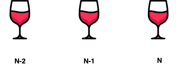 와인은 양의 비용이므로 마지막 잔을 안 마신다는 의미는 1부터 N-1까지 마신 경우의 최댓값이 1부터 N까지 마신 경우의 최대를 의미한다.