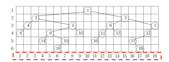위 그림에 힌트가 있다. 세로축은 레벨을 의미한다. 가로축을 보면 좌측부터 노드의 번호가 매겨진다.
