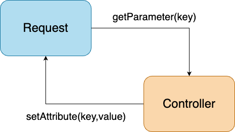 Request 객체로부터 요청데이터를 가져와 비즈니스 로직을 처리하고 그 결과를 다시, Request 객체로 보낸다. Controller는 비즈니스로직을 처리하는 클래스이다. 그러므로 비즈니스 로직과 관련된 객체에만 의존하는 것이 좋다. Request 객체는 비즈니스 로직 외에도 Header, Cookie, Session 등 여러 복잡한 데이터를 품고 있는 데이터이다.