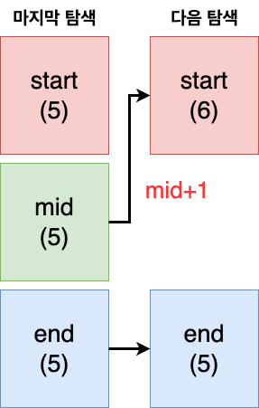 start를 mid+1로 하여 우측범위를 탐색한다.