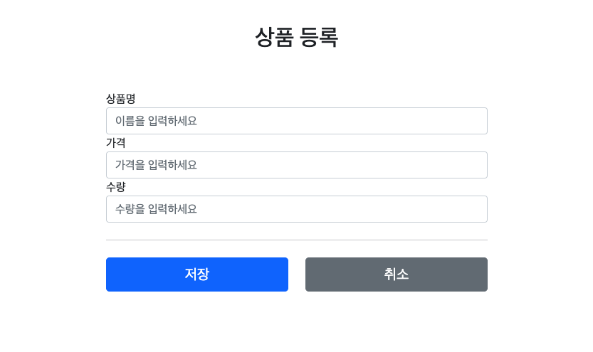 클라이언트는 상품명, 가격, 수량을 입력하여 서버로 전달한다. 요청에 매핑되는 컨트롤러는 요청으로 들어온 데이터를 검증한다. 이때 검증에 실패하면, 오류 내용을 HashMap에 담아 Model로 전달한다.