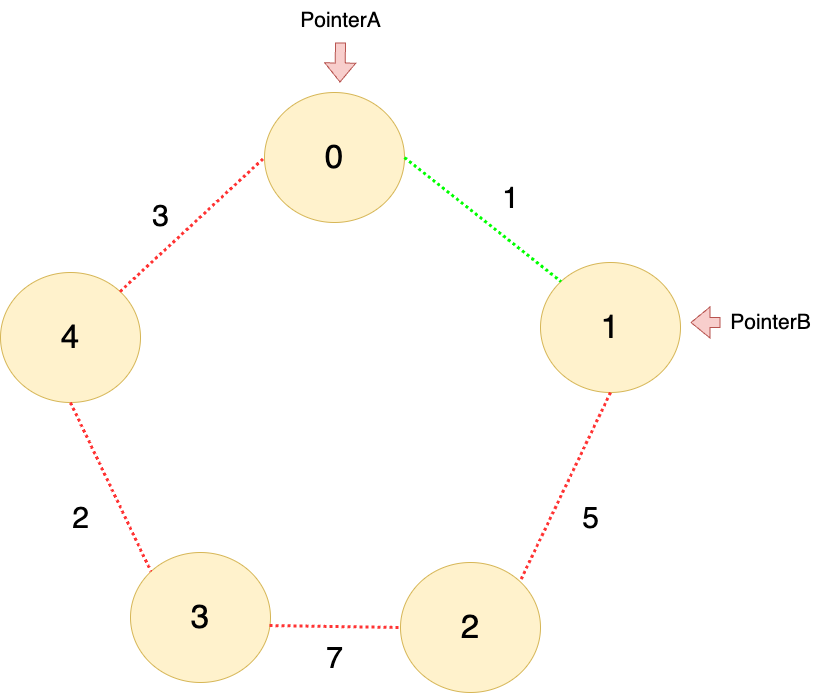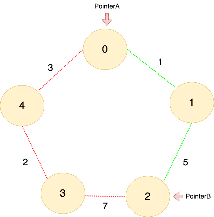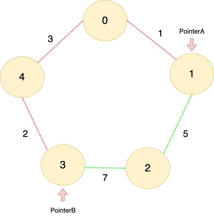 PointerA와 PointerB 사이의 거리는 두 가지가 있다.