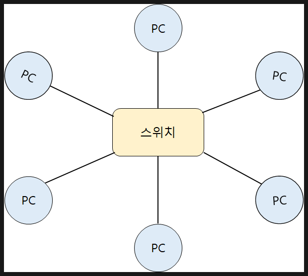 LAN은 Star형과 Tree형의 토폴로지를 주로 사용하다보니 데이터를BroadCating 방식으로 전송한다. BroadCasting 방식은 근처 모든 선로에 데이터를 뿌리는 방식이다. Star형과 Tree형은 1대1로 연결된 방식이 아니라 1대 다로 연결된 방식이기에 데이터를 전체적으로 뿌려주고 프레임 헤더에 명시된 주소의 장비가 이에 반응하는 원리로 동작한다.