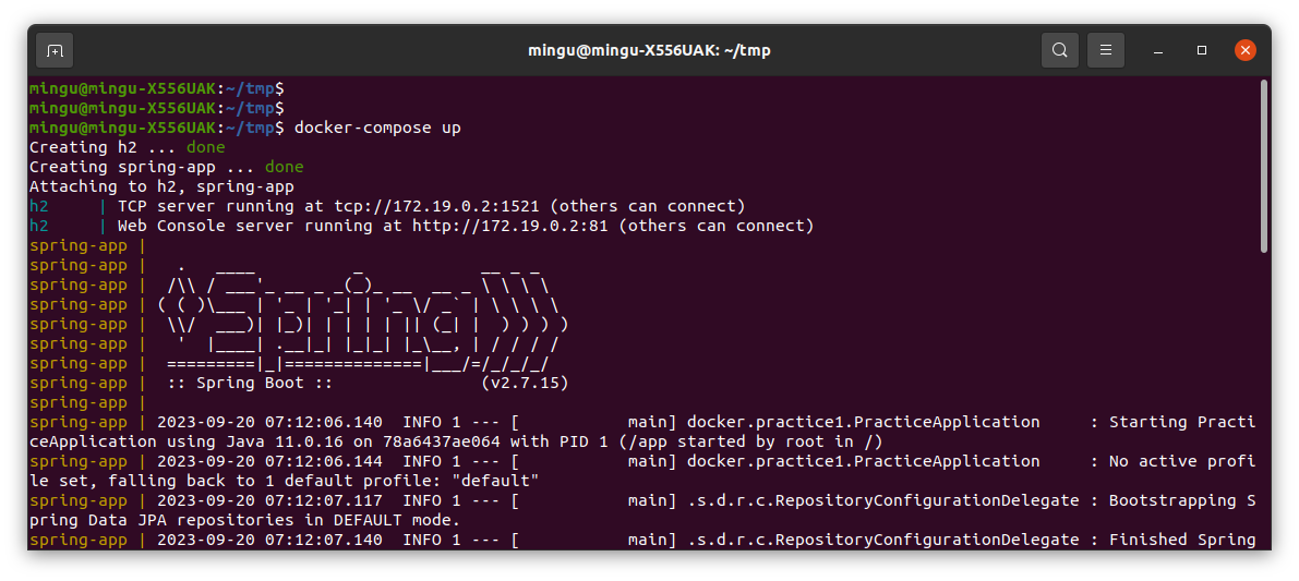 | [Docker] Docker Compose로 SpringBoot와 H2 연동 및 실행하기 (2) | 2023.09.18 |