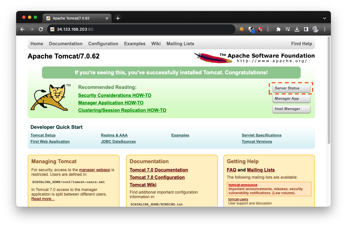 3) 외부에서 톰캣 컨테이너에 접속해보기