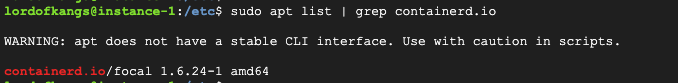 sudo apt list | grep containerd.io로 컨테이너D 패키지가 설치되었는지 확인한다.