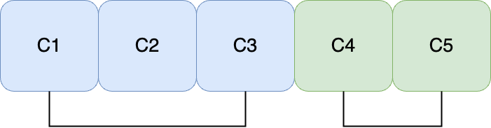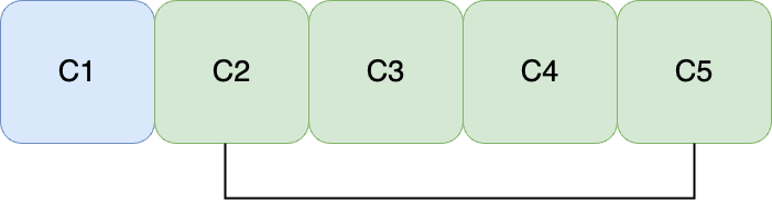 끝에 'C1 ~ C5까지의 합'을 더해주는 이유는 최종적으로는 모든 파일을 합치는 비용을 합해야 한다고 문제에 나와 있기 때문이다. C1 ~ C5까지의 합은 누적합 알고리즘을 이용한 구간합으로 구한다. 이해를 돕기 위해 아래 예를 들어보자.