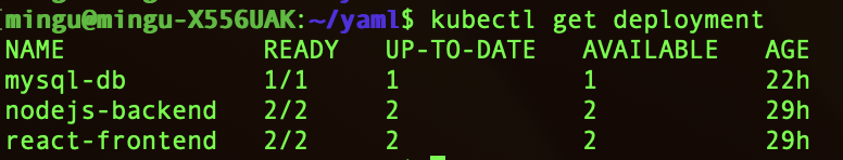 지난 포스팅에서 미니큐브로 구성한 쿠버네티스 클러스터에 프론트엔드, 백엔드 서비스 및 디플로이먼트를 생성해보았다. 이번 포스팅에서는 MySQL 서비스 및 디플로이먼트를 생성하여 백엔드와 연동시켜보겠다.