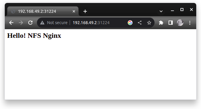 위 페이지는 NFS 서버에 저장한 index.html이다. Nginx 컨테이너가 NFS 서버의 PV에 마운트하여 index.html을 참조한 것이다.