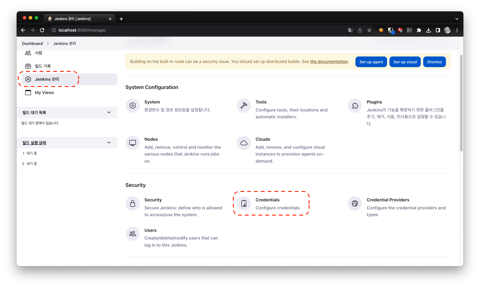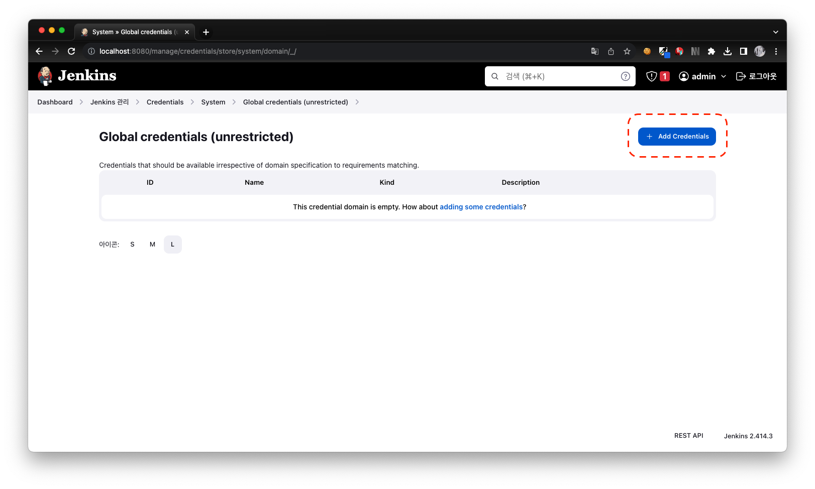 SSH Agent 설치가 완료되면 우리는 언제든 빌드과정에서 Credential를 제공할 수 있다. 그럼 이번에는 Credential를 등록해보자.