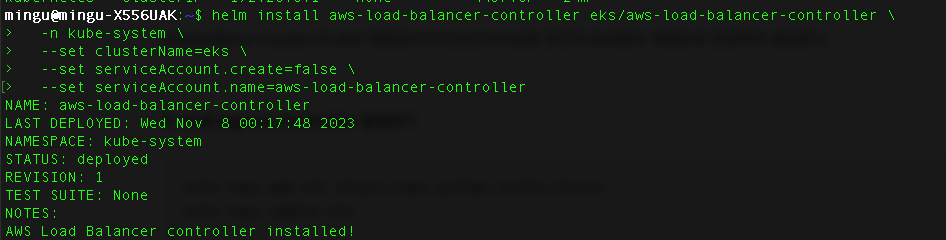 helm install aws-load-balancer-controller eks/aws-load-balancer-controller \