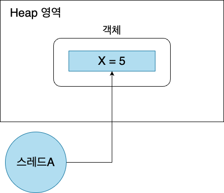 스레드A가 Heap 영역에 저장된 객체의 멤버변수의 데이터를 5로 변경하였다. 그리고 5를 인출하려고 하는데, Round Robin 스케줄링 정책에 따라 할당받은 CPU 사용시간을 다 써서, 스레드B에게 CPU가 넘어갔다고 가정해보자.