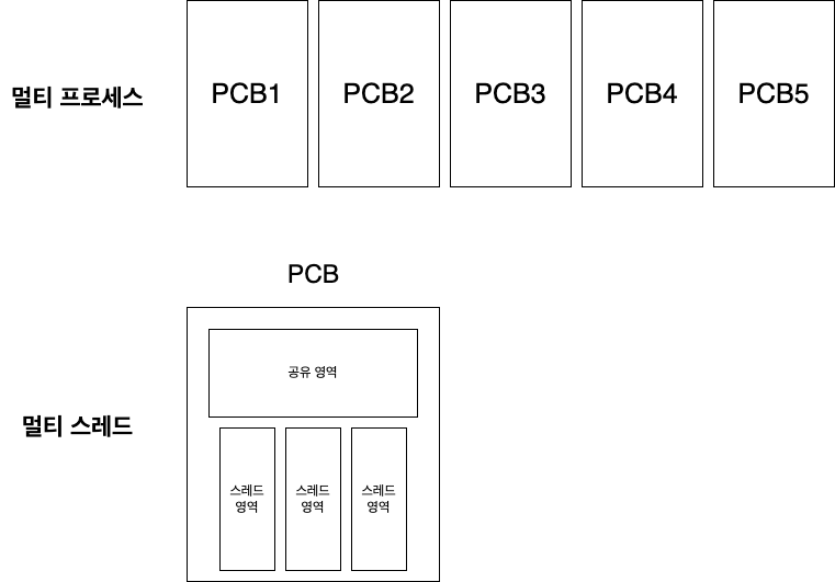 멀티 프로세스는 독립적인 메모리 공간이 있어 안정적이지만 컨텍스트 스위칭을 비롯한 자원 및 성능이슈가 발생할 수 있고 멀티 스레드는 공유하는 메모리 공간이 있어 컨텍스트 스위칭을 비롯한 많은 부분에서 좋은 성능을 낼 수 있지만 동시성 이슈와 같은 데이터 정합성 문제를 일으킬 수 있다. 이렇듯, 멀티 프로세스와 멀티 스레드는 각각의 장점과 단점을 지니고 있므로, 환경과 목적에 따라 적절히 선택되어 사용되어 진다.