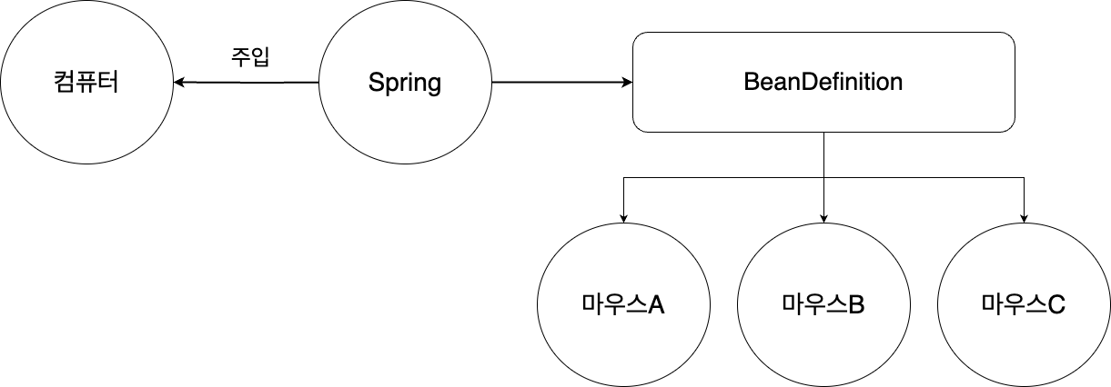 Computer가 직접 Mouse 객체를 생성하고 주입하면 결합도가 증가하니 Spring이 대신 생성하고 주입한다.