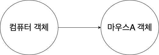 컴퓨터 객체가 마우스 객체를 참조하면 클릭 기능을 사용할 수 있다. 그러나 위 코드와 같이, 컴퓨터가 특정 마우스에 직접 접근하면 두 객체 사이의 결합도는 증가한다. 컴퓨터 클래스 안의 코드는 마우스A 전용코드가 된다. 만약 마우스A에서 마우스B로 변경된다면, 컴퓨터 클래스의 코드도 모두 수정해야 한다. 이는 객체지향의 5대 원칙 중 하나인 DIP(의존역전원칙)를 위배한 것이다.