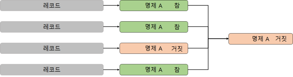 해당 명제는 고등학생 전부가 떡볶이를 좋아해야 '참'이 된다. 만약 단 한명이라도 떡볶이를 싫어하면 명제는 거짓이 된다. 다시 말해서, 전체 고등학생이 좋아해야 명제는 조건이 된다.