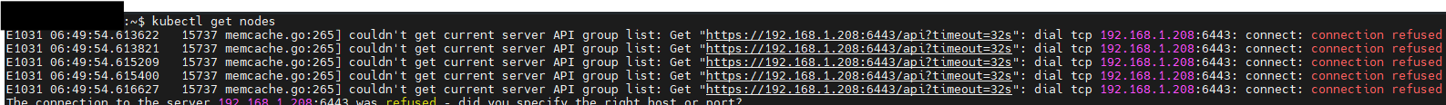 K8S 클러스터를 구축한 노드를 재부팅 하였더니, kubectl 명령이 동작하지 않은 현상이 발생