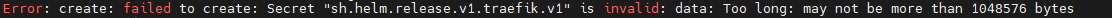 Deployment.apps "traefik" is invalid: metadata.annotations: Too long: may not be more than 262144 bytes