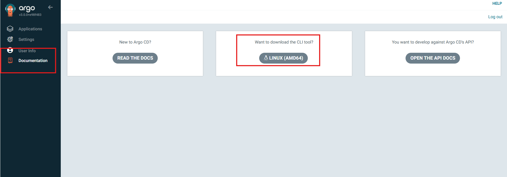 배포된 ArgoCD GUI로 접속하고 Documentation 탭에서 LINUX(AMD64)용 CLI를 다운로드한다. 그럼 argocd-linux-amd64 파일을 받을 수 있는데, argocd-linux-amd64 파일을 linux 서버로 복사한다.