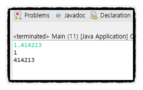 처음에 나는 강제 형변환을 이용했다. double 형을 int로 강제형변환 시키면 정수 부분만 남고 정수부분을 입력받은 실수와 빼면 소수부분을 얻을 수 있다 생각했다. 하지만 소수부분이 0.414213으로 나왔다. 출력결과는 414213이 나와야한다.