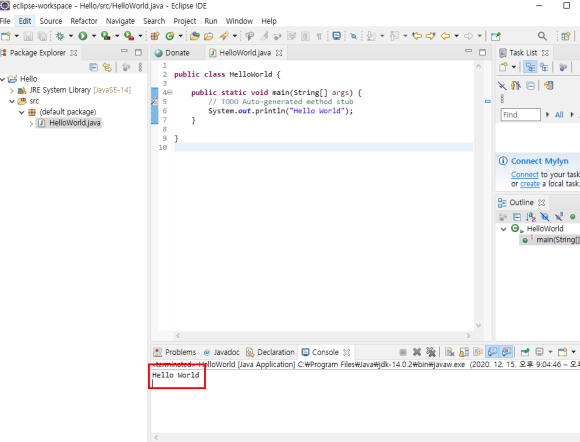 자바코드를 작성하여 JDK를 실행시켰다.