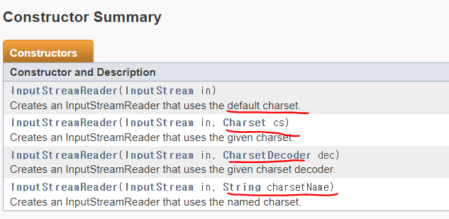 InputStreamReader 객체를 생성할 때,